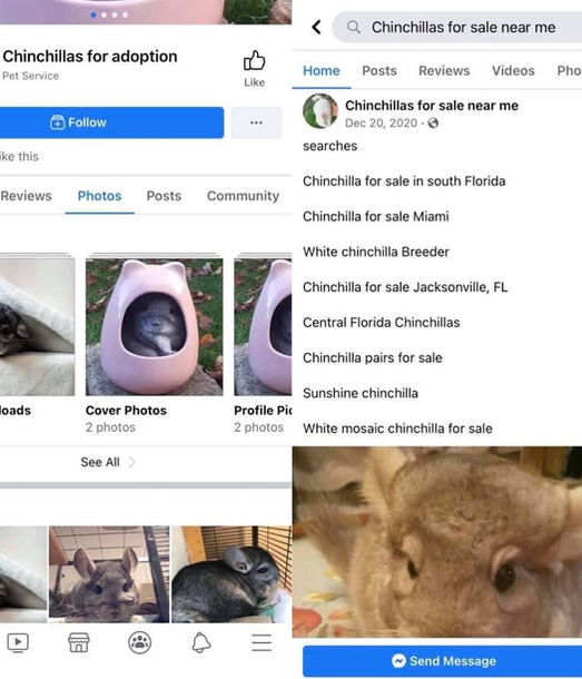 Scammers use photos from multiple places, often with different backgrounds, quality, and animals. Does the page post the same animal over and over with a different description? Is the background or quality different in each advertisement? Are some photos watermarked but others are not? Most breeders/rescues have unique ways of taking photos of their available chinchillas; an example, we try to always have bright, clear photos or videos that are sometimes taken on tile, in front of a light colored wall (videos we post of TikTok/Instagram), or on a shelf. There are exceptions to this, but generally that is how we take our photos and videos.